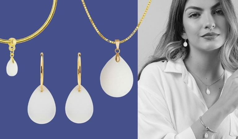 Esta colección transforma tu experiencia de lactancia en un set completo, con un colgante y cadena, pendientes y un charm con pulsera, hechos por ti, listos para usar.